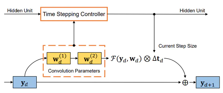 The correspondence between residual networks and dynamical systems motivates researchers to unravel the physics of ResNets with well-developed tools in numeral methods of ODE systems. The Runge-Kutta-Fehlberg method is an adaptive time stepping that renders a good trade-off between the stability and efficiency. Can we also have an adaptive time stepping for ResNets to ensure both stability and performance? In this study, we analyze the effects of time stepping on the Euler method and ResNets. We establish a stability condition for ResNets with step sizes and weight parameters, and point out the effects of step sizes on the stability and performance. Inspired by our analyses, we develop an adaptive time stepping controller that is dependent on the parameters of the current step, and aware of previous steps. The controller is jointly optimized with the network training so that variable step sizes and evolution time can be adaptively adjusted. We conduct experiments on ImageNet and CIFAR to demonstrate the effectiveness. It is shown that our proposed method is able to improve both stability and accuracy without introducing additional overhead in inference phase.