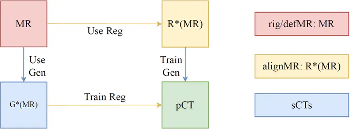 The use of Magnetic Resonance (MR) imaging for proton therapy treatment planning is gaining attention as a highly effective method for guidance. At the core of this approach is the generation of Computed Tomography (CT) images from MR scans. However, the critical issue in this process is accurately aligning the MR and CT images, a task that becomes particularly challenging in frequently moving body areas, such as the head-and-neck. Misalignments in these images can result in blurred synthetic CT (sCT) images, adversely affecting the precision and effectiveness of the treatment planning.