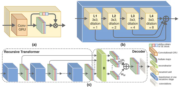 We propose a novel neural network architecture to reduce streak artifacts generated in sparse-view 2D Cone Beam Computed To-mography (CBCT) image reconstruction. This architecture decomposes the streak artifacts removal into multiple stages through the recurrent mechanism, which can fully utilize information in previous stages and guide the learning of later stages. In each recurrent stage, the key components of the architecture are computed recursively. The recursive mechanism is helpful to save parameters and enlarge the receptive field effiently with exponentially increased dilation of convolution. To verify its ectiveness, we conduct experiments on the AAPM CBCT dataset through 5-fold cross-validation. Our proposed method outperforms the state-of-the-art methods both quantitatively and qualitatively.
